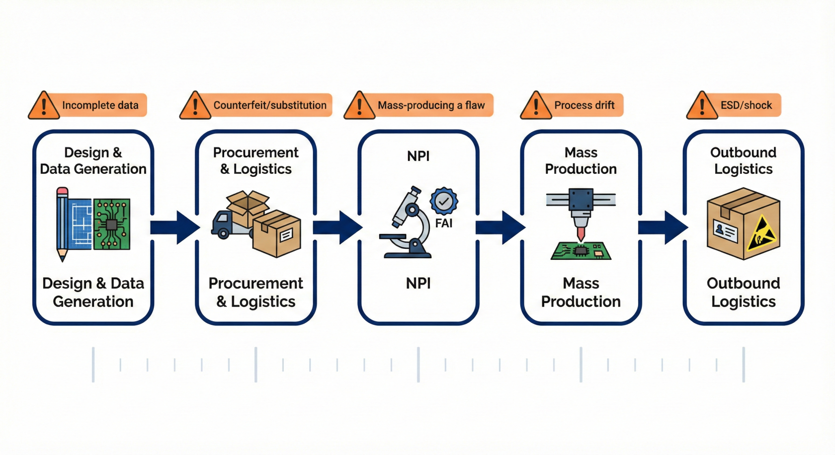 Understanding the sequential flow of an electronics product is critical for identifying risk points.