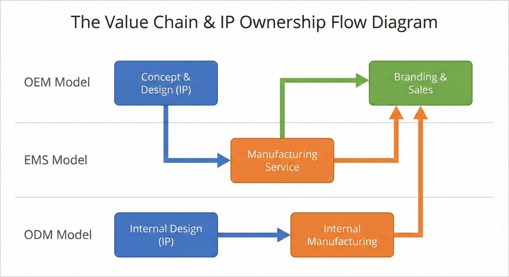 Manufacturing relationships are defined by one question: Who owns the Intellectual Property (IP)? Misunderstanding these acronyms is not just a vocabulary error; it is a legal and strategic failure. If you approach an EMS expecting them to design your product, you will wait indefinitely. If you approach an ODM expecting to own the design files, you will face a lawsuit. Clarity on roles defines who is responsible for the engineering data and who carries the liability for failure.